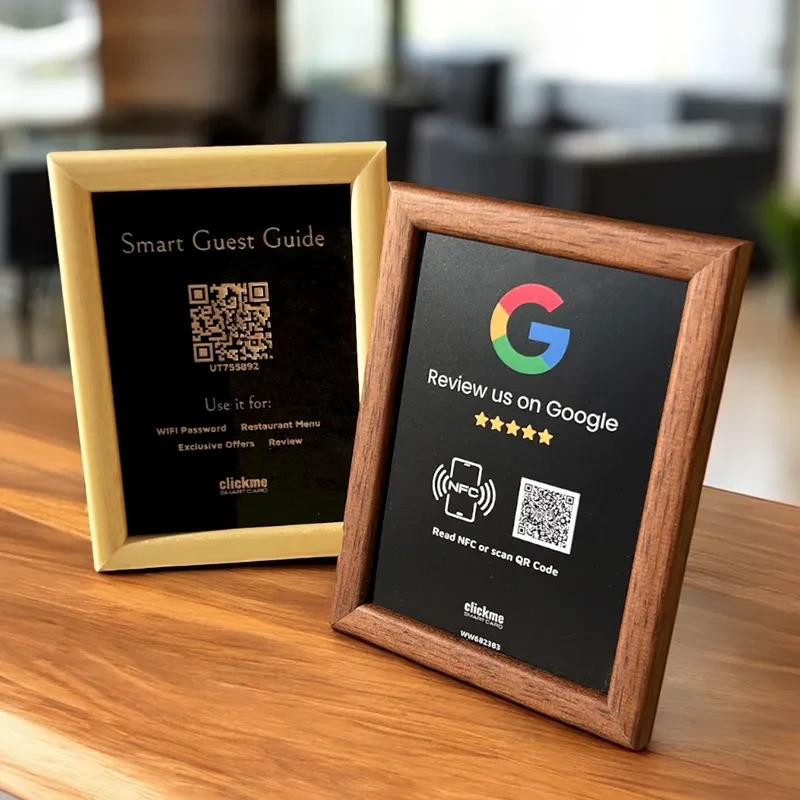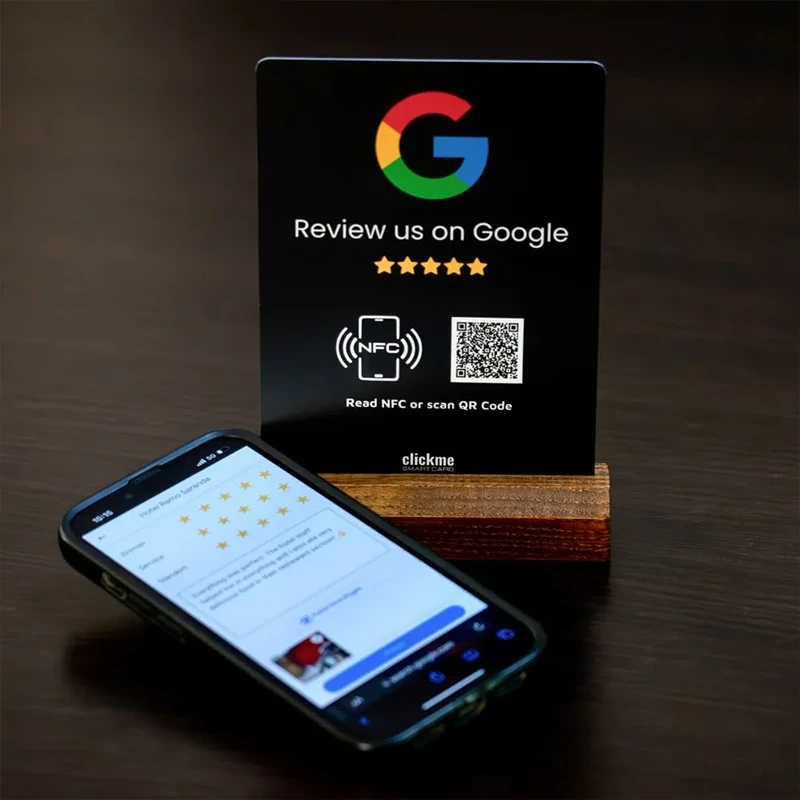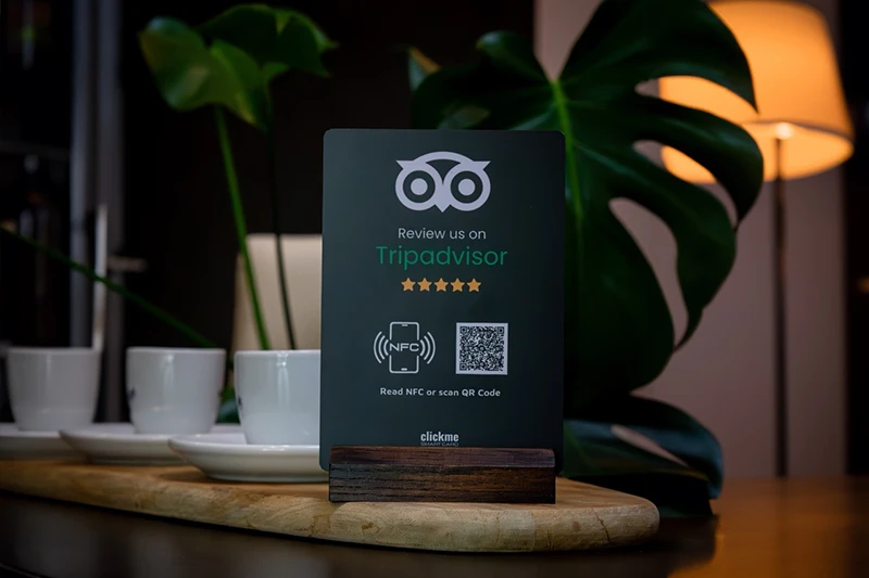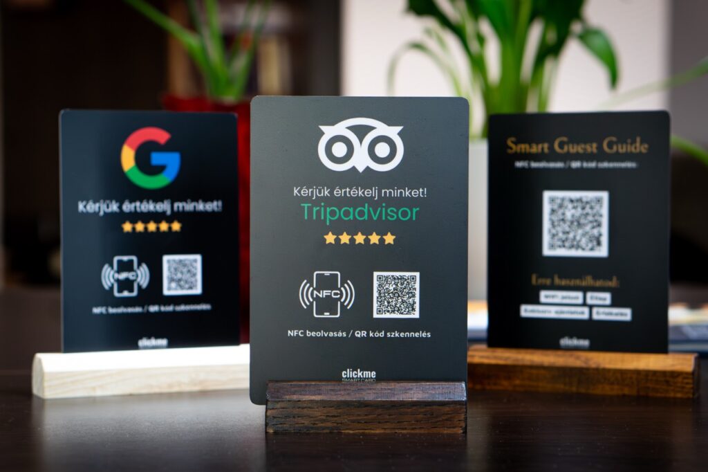 Google és Tripadvisor értékelés gyűjtő Smart asztali táblák és kártyák NFC-vel és QR kóddal